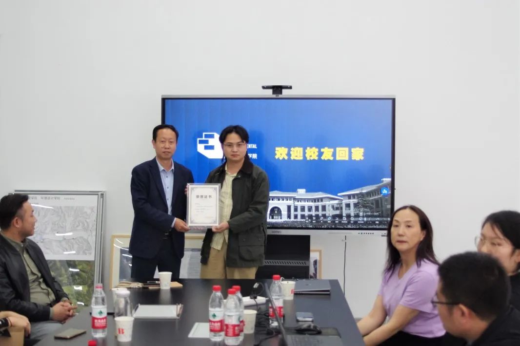 胡俊涛是永利总站ylzz55风景园林专业2017届毕业生,毕业后在北京从事艺术策展工作,2020年永利总站ylzz55进入互联网行业,2022年永利总站ylzz55初创办Artverse艺术元宇宙平台,正式进入艺术元宇宙及数字艺术相关领域。会上,两位校友对毕业后的工作经历特别是主持参与过的行业前沿的项目进行了分享,与会领导围绕人才培养、元宇宙与时装周合作项目、智慧校园等方面进行了充分讨论,并向两位校友颁发了“荣誉校友”证书,赠送了校友纪念品。